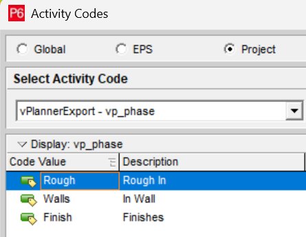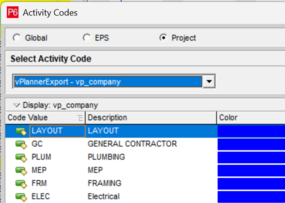 To automate the mapping process you need to code P6 with either User Defined fields to Activity Codes that match the attributes defined in the destination project in vPlanner. The code names must match between the two systems and you can follow the naming convention below to fully automate the code mappings.