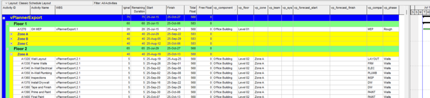 vPlanner can read schedules from Primavera P6 using the P6 XML format and can automatically map User Defined fields or Activity Codes from P6 to vPlanner attributes.