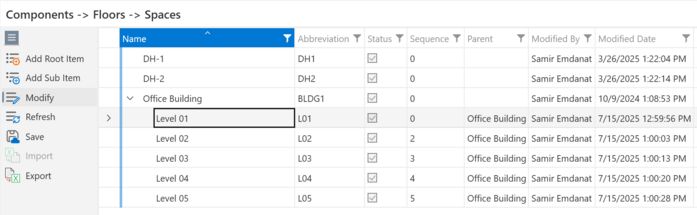 Figure 71 – Example Attributes for Locations in vPlanner (note that names match User Field Values)