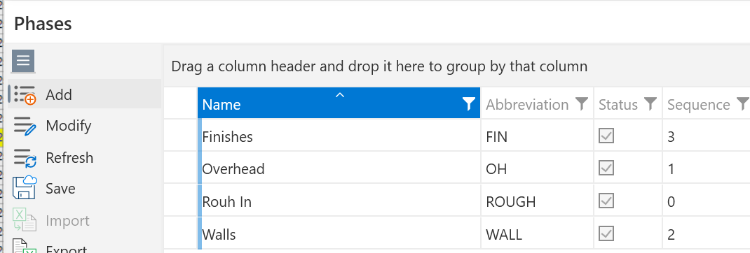 Code Definitions for Company and Phases which are common to all projects (note that this can be done using User Defined fields as well but don't use both on the same project).