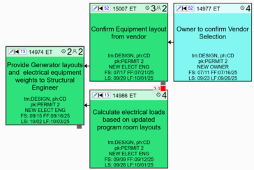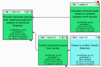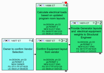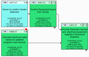 Use those tools to force the visible tasks at the start of each path in the plan to align. This kind of layout is highly effective when trying to screen the tasks for constraints. For example, in a top down layout, the first row will be the least constrained, the next row will be constrained by the first row tasks, and so on.