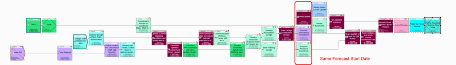 Here is a sample result after running the tool to isolate the two top longest paths from a specific milestone.
