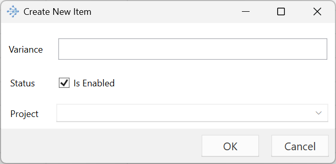 A variance item can also be assigned to a specific project or to all projects. Leave the project pull down blank to assign the new variance to all projects.